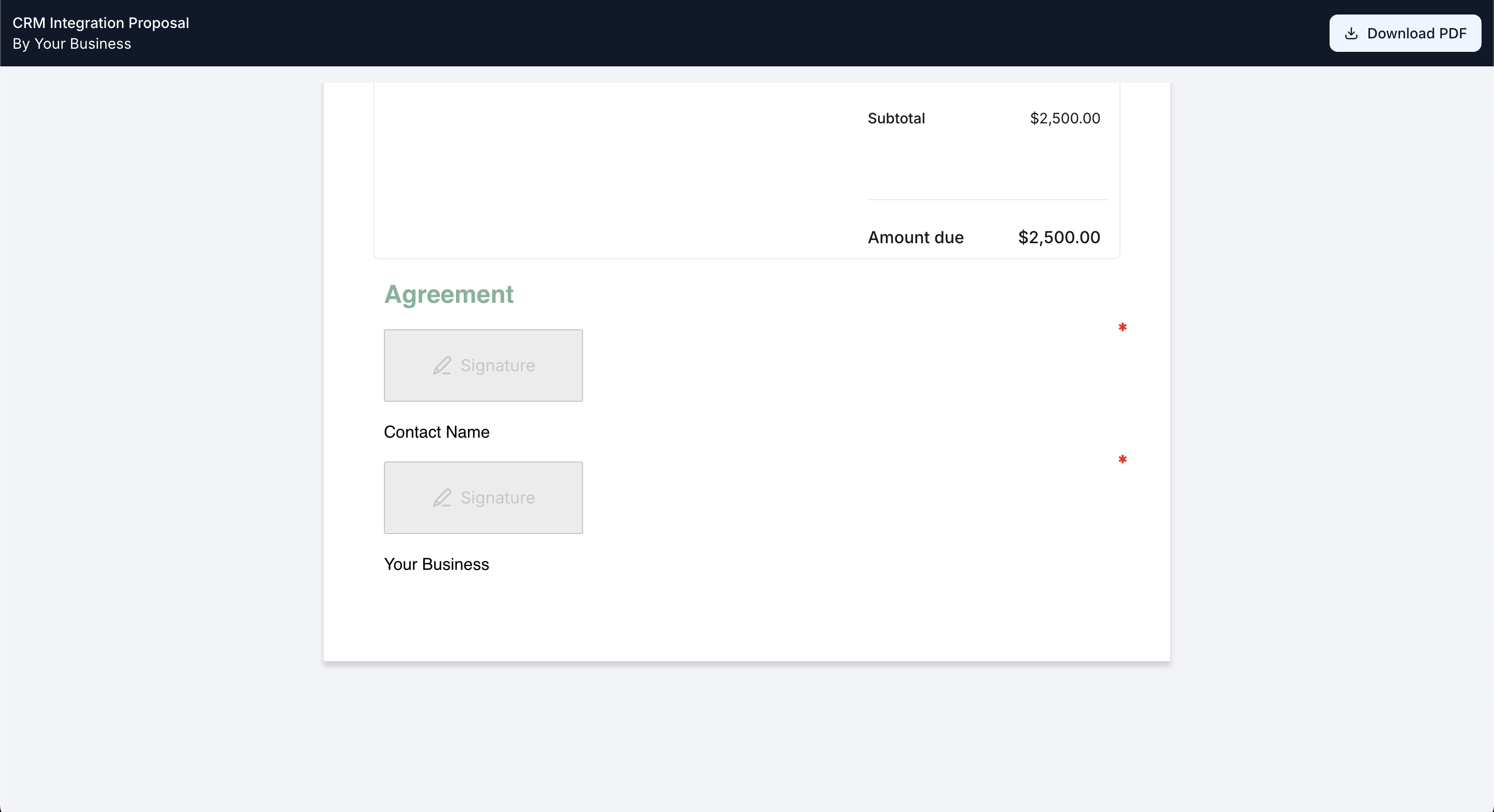 Full Scope's secure digital signature feature allows you to have your contracts and proposals signed electronically.