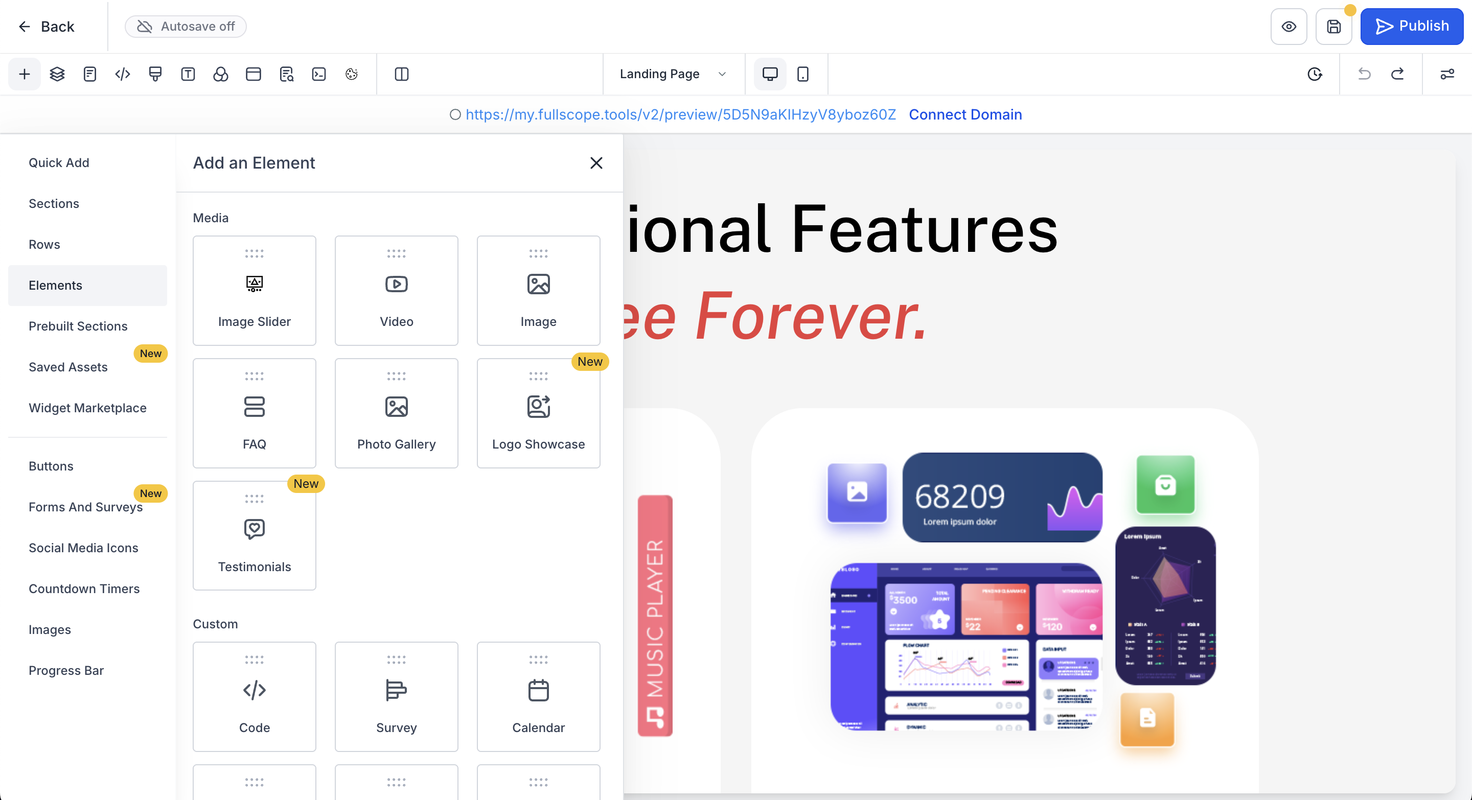 Full Scope's tools feature an intuitive drag & drop builder that allows you to design your sites effortlessly.