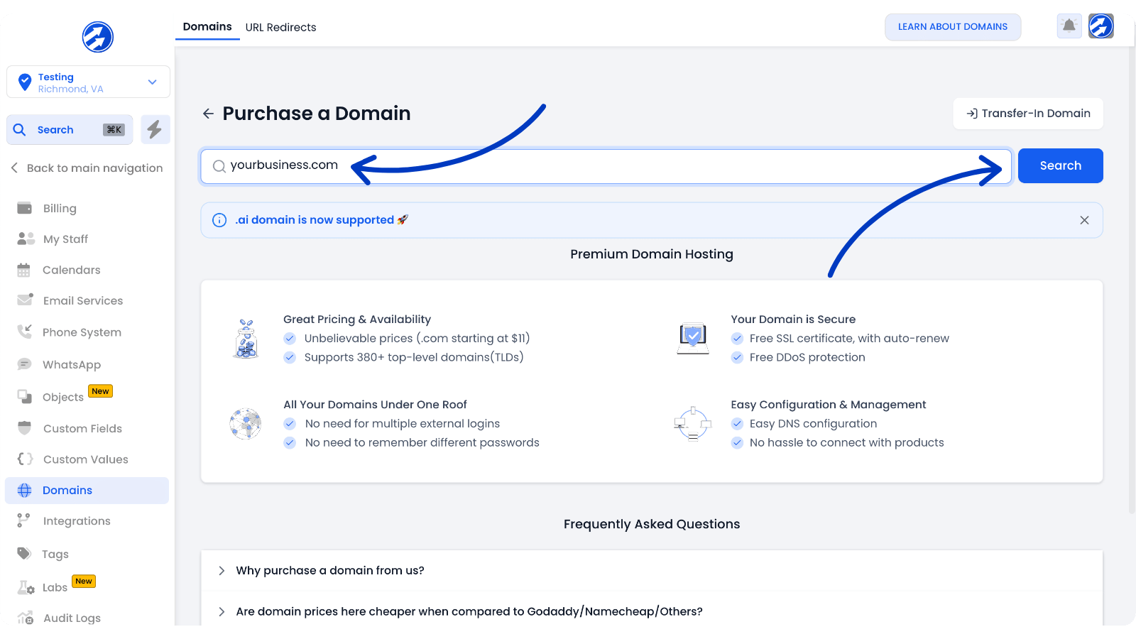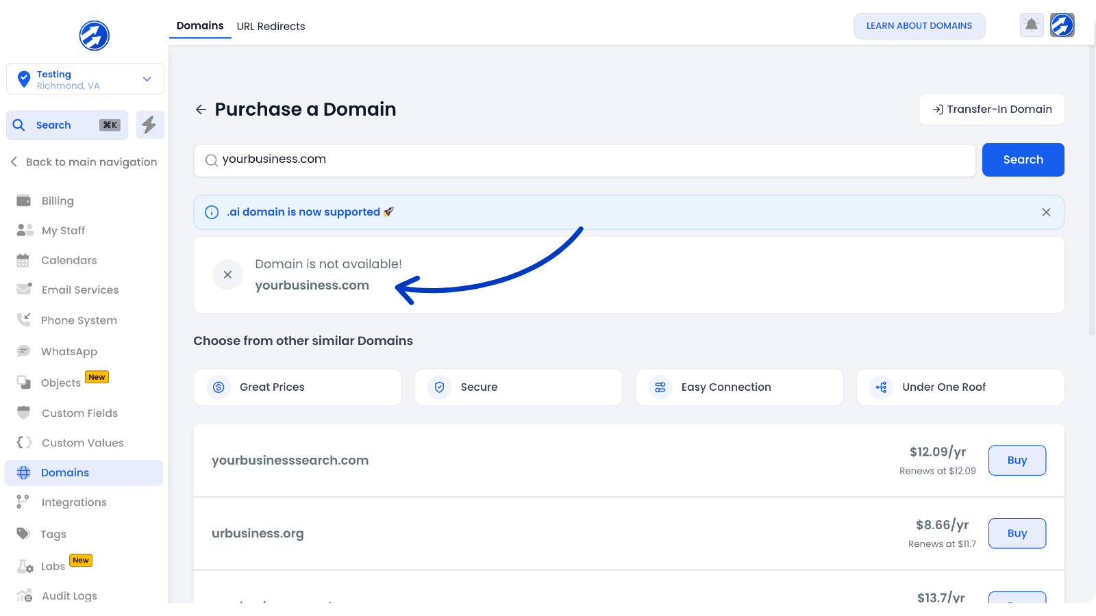 If you want a branded domain setup for your website, email, client-facing links, and more, we can handle this for you. See the "done-for-you" options in your account's left menu to learn more.