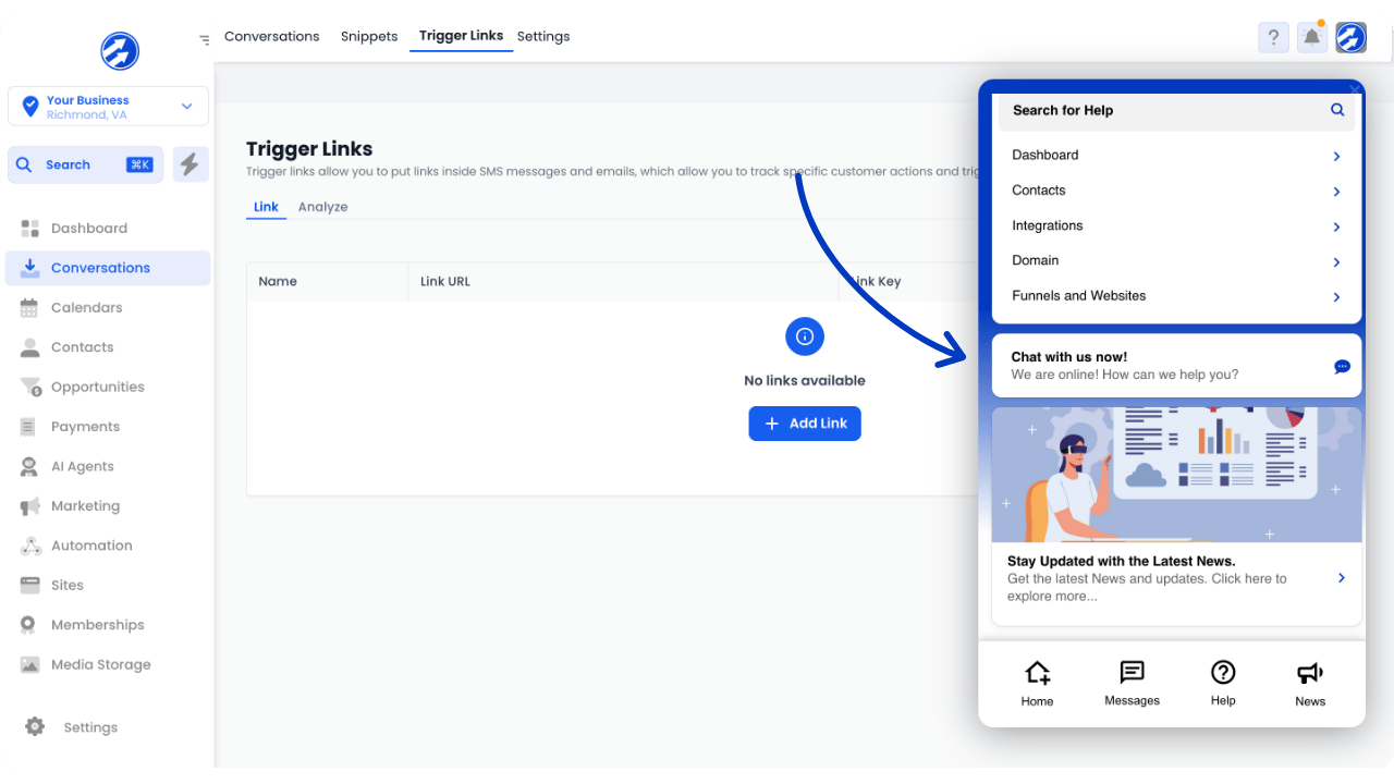 By default, the first answer to your questions will come from our AI Support Bot. It's great at answering common questions and guiding you through simple aspects of the platform.